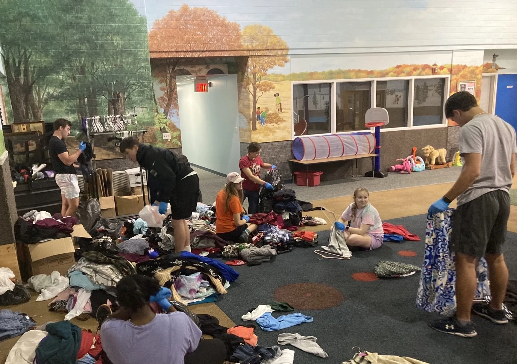 The next day, a crew of volunteers put their mission into action and sorted donations for Hope's Closet, our free in-house thrift store for our clients.